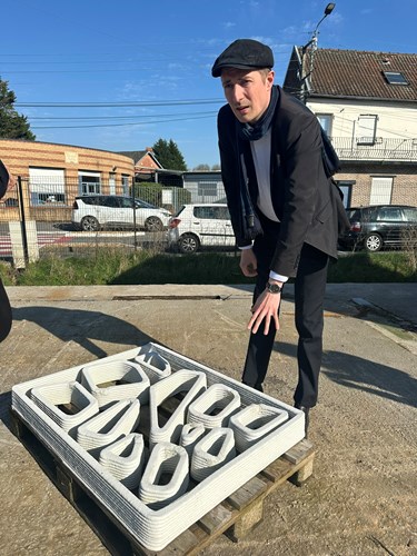 D’ici quelques semaines, l’école pour pilote d’imprimante 3D disposera d’un étage et d’un toit. Imprimés grâce à la maxi-printer. La machine, véritable imprimante 3D mobile en forme d’araignée, viendra déposer couche par couche les murs de cet espace de 450 m2. Il sera alors greffé à la première partie déjà construite selon cette méthode inventée par Antoine Motte. “Nous venons d’inaugurer l’incubateur de 400 m2”, se réjouit l’entrepreneur à la tête de 7 sociétés basées à la citadelle des savoir-faire, son siège et “bac à sable d’expérimentation” près de Valenciennes. En véritable vitrine de son savoir-faire et des dernières technologies qu’il met au point, le lieu est des plus singuliers. Avec sa tour de 14 m de hauteur, il a tenu quelques mois le record du monde de la plus haute tour imprimée en 3D. “À chaque nouvelle partie, nous nous challengeons techniquement. L’école de pilotes, qui doit être livrée en 2026, comprendra par exemple un plancher intermédiaire alvéolaire qui a nécessité pas moins de trois ans de R&D”. L’objectif ? Alléger la structure et réduire encore plus l’empreinte carbone des bâtiments. C’est dans cette veine que l’entrepreneur a créé Termix-3D, une usine capable de formuler et produire son propre béton pour imprimante 3D. “Celui de l’école est formulé avec des laitiers de Dunkerque en substitution d’une partie du clinker (⅓), de sables de Boulogne-sur-Mer (⅓) et de métakaolin (⅓), un liant qui assure une résistance comparable au ciment”, détaille Antoine Urquizar, cofondateur de Constructions-3D et spécialiste des matériaux. Côté isolation, la création d’une cavité entre les deux parois imprimées est idéale pour recevoir l’isolation. Ici, encore une fois, la ressource locale d’anas de lin disponible en quantité dans la région, est privilégiée. In fine, la citadelle débutée en 2019 affichera 3 000 m2 de surface de plancher. C’est ici que sont en outre fabriquées les imprimantes destinées à la commercialisation.