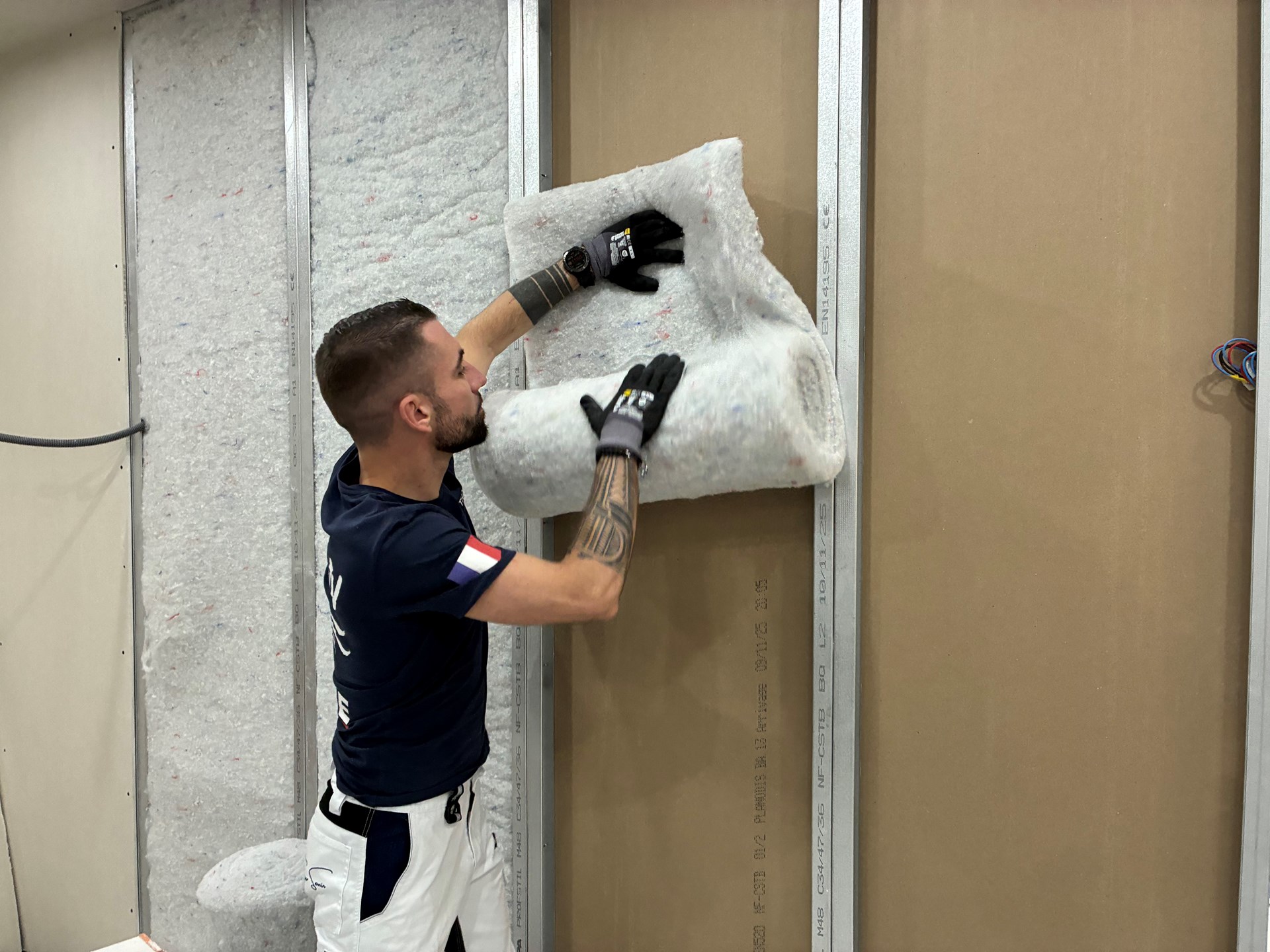 PAR SON 43 dB est un isolant acoustique en rouleau pour cloisons distributives, offrant un affaiblissement Rw de 43 dB (-2 ; -7), réduisant le bruit jusqu’à 90 % et divisant la perception sonore par deux. Léger, doux, non irritant et sans odeur, il facilite la pose. Composé de fibres textiles recyclées et fabriqué en France, il s’inscrit dans une démarche environnementale et sociale, en partenariat avec TREMPLIN, valorisant les textiles usagés et créant de l’emploi local. PV feu inclus.