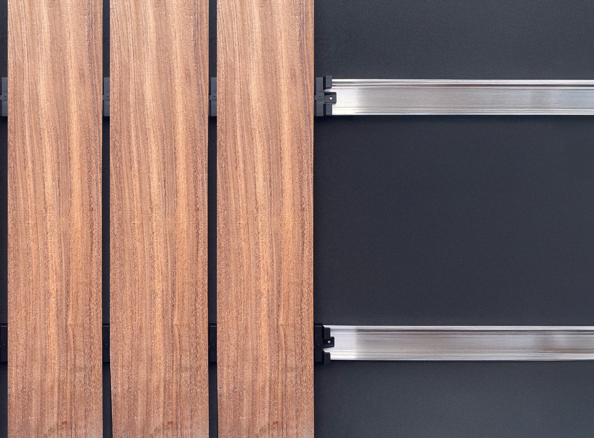 Linup de SOLIDOR est un système de support et fixation en aluminium pour façades, terrasses et plafonds en bois. Les clips noirs se positionnent facilement sur le profilé et s’insèrent dans la rainure des lames, offrant une fixation discrète et invisible sans endommager le bois. Le principe « Click & Slide » permet d’adapter différentes largeurs de lames et joints variables. Les vis se fixent dans le profilé, composé à 80 % d’aluminium recyclé.