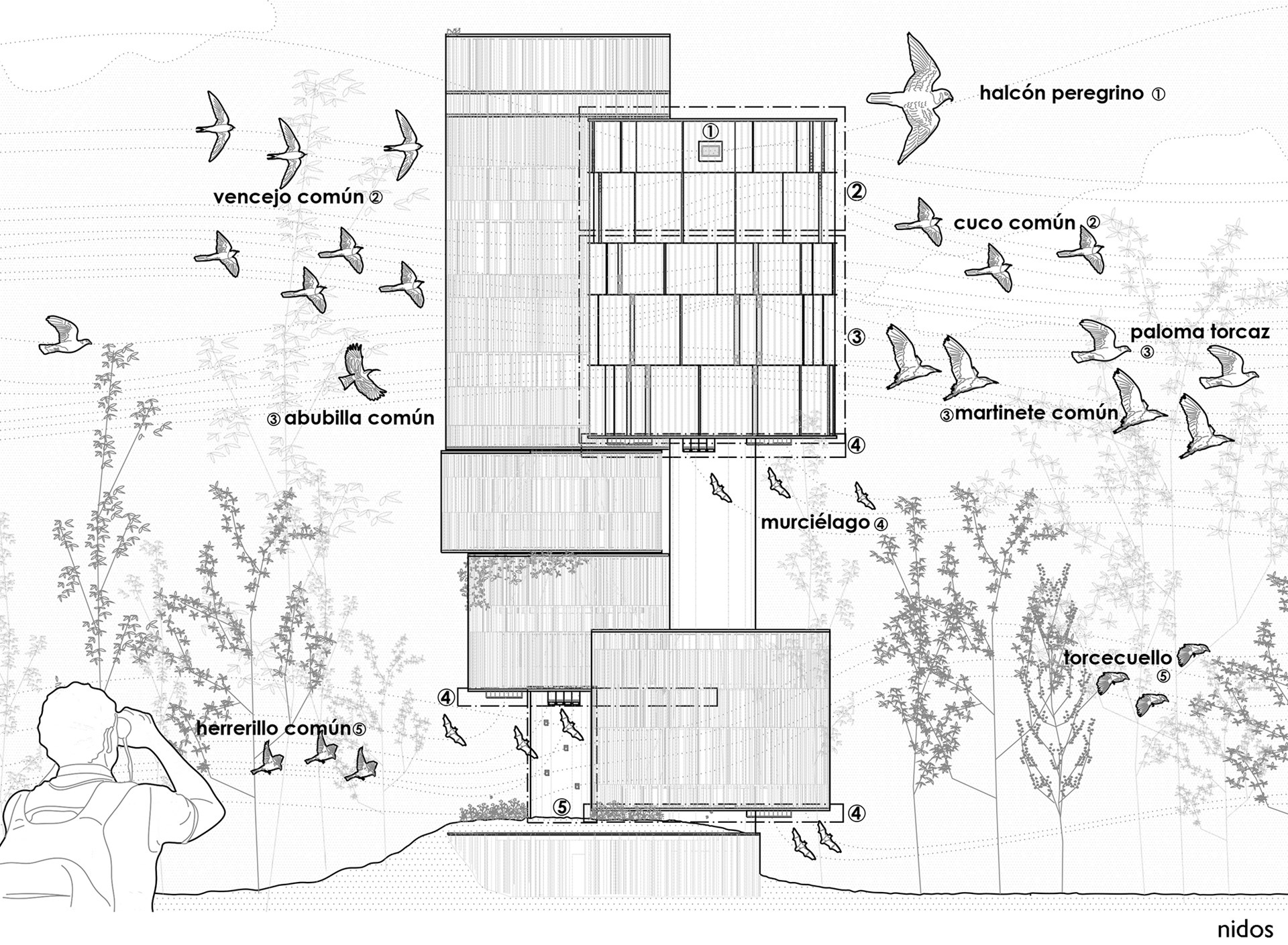 Ce château d’eau/refuge est le fruit d’une collaboration avec plusieurs ornithologues et écologistes, qui ont aidé à placer stratégiquement les nids afin de promouvoir la biodiversité. © TEA