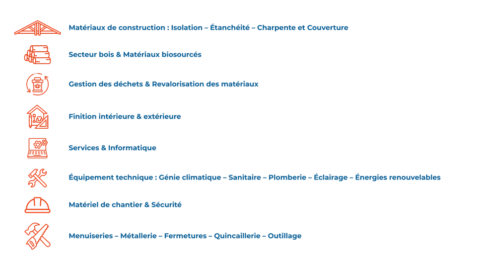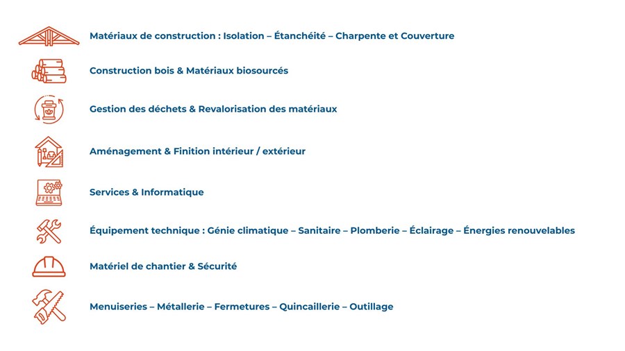 * Ne peuvent exposer que les grossistes-négociants ou les fabricants, distributeurs-importateurs présentant des matériaux, de l'équipement technique ou tous produits et services se rapportant aux activités de la construction.