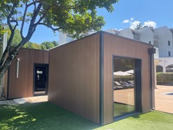 Le profil alvéolaire est conçu pour habiller tous types de façades. Son système associe un effet tasseau bois naturel, coloris CRAFT à un fond NOIR, reprenant l'aspect d'un pare-vapeur pour un esthétisme contemporain et épuré. Le bardage BARDEO36 enrichit les travaux d'isolation par l'extérieur. Il permet d'agir plus efficacement contre les ponts thermiques et les problèmes d'étanchéité. Disponible désormais en coloris FULL BLACK.