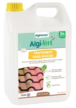 Élimine facilement les algues vertes et les lichens sur les toitures, façades et terrasses.