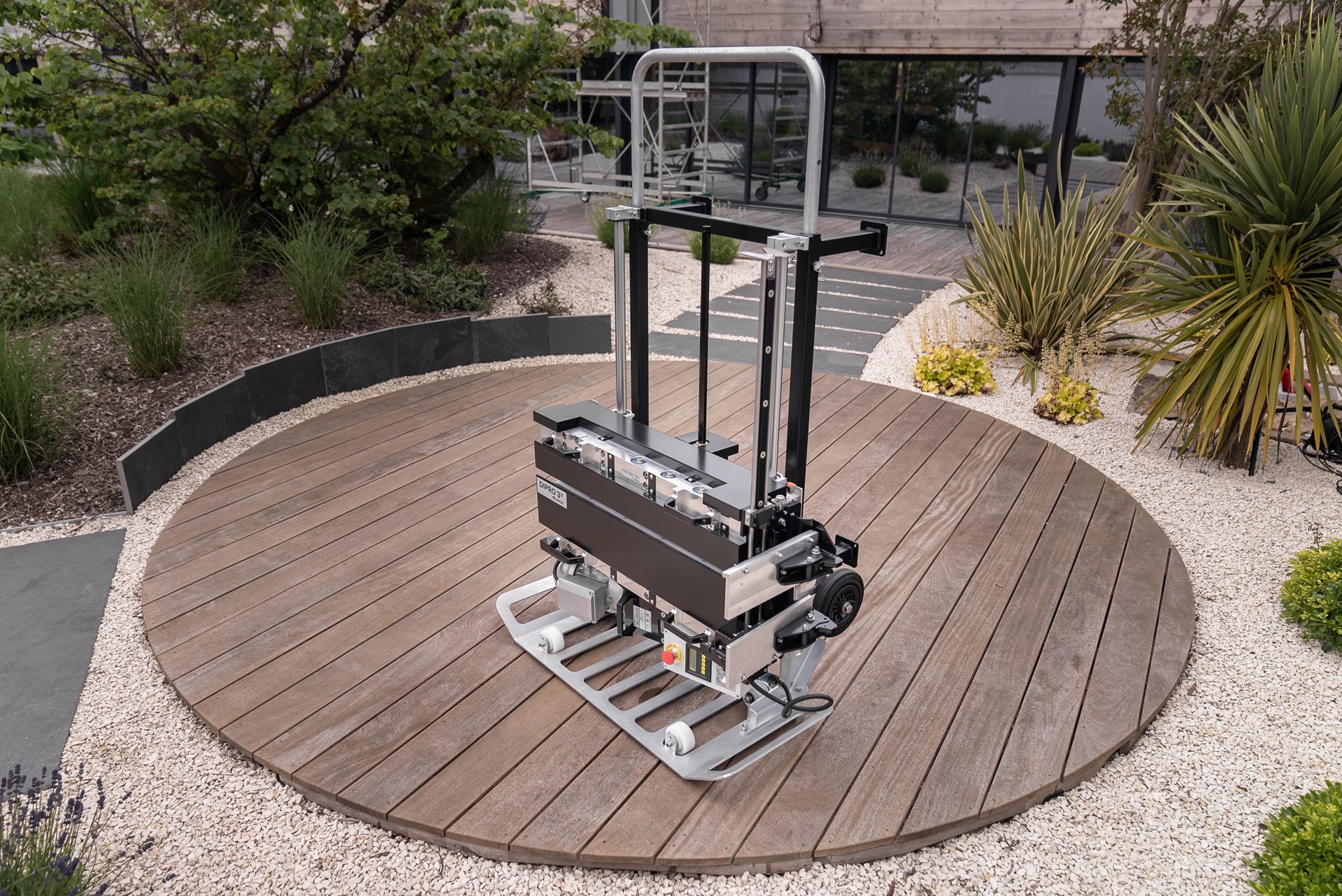 2. Mobilité et adaptabilité inégalées Conçue pour répondre aux exigences des chantiers les plus variés, la Dipro3x est modulaire et démontable, ce qui facilite son transport et son installation, même dans des espaces restreints ou sur des toits en pente. L’option Mobility+ renforce cette mobilité, permettant à la machine de s’adapter à tous les terrains, y compris en intérieur. Cette polyvalence en fait un outil indispensable pour les professionnels confrontés à des environnements de travail complexes.